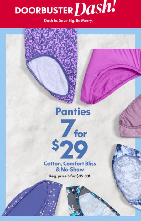Lane BryantDoorbuster Dash! Shop in store and get 7 for $29 panties.